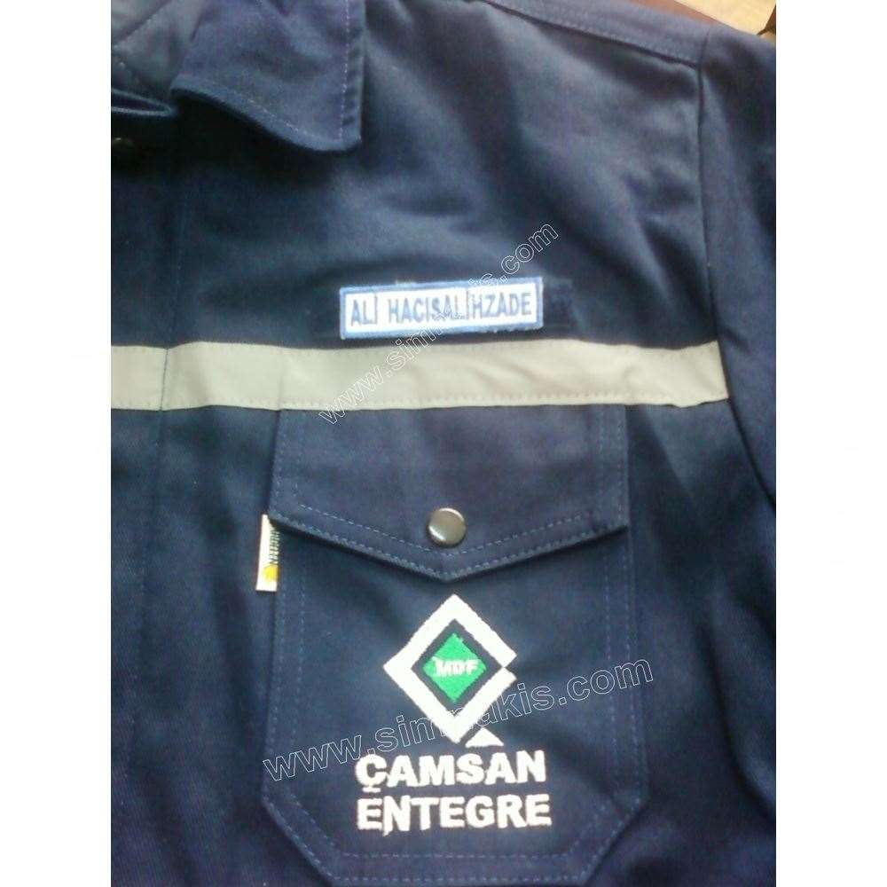 Enhance your brand image with the Çamsan Entegre overall embroidery application, combining functionality, durability, and professional design.