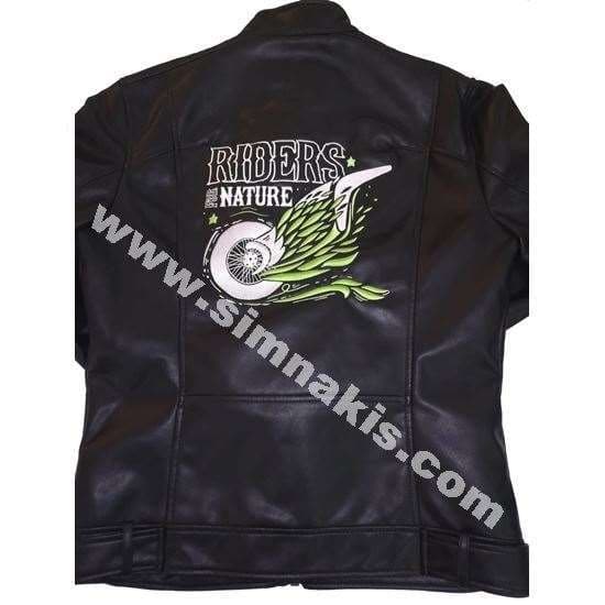 HomeCOMPANY LOGO TEXTILE PRODUCTS Riders for Nature Embroidery Application on Leather Jacket